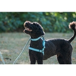 Custom made no pull dog harness. Width will vary depending on the size of the harness. Matching leashes are also available! This harness is made from our Adjustable Beta Biothane, which is a thinner, more flexible material, but still has the benefits of Beta Biothane.