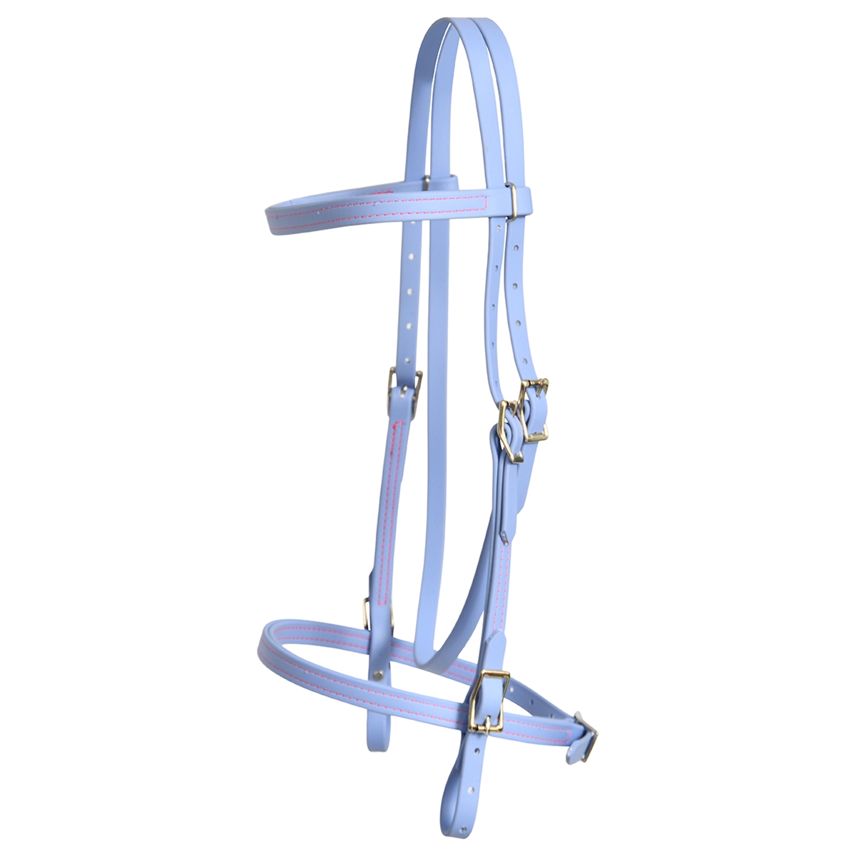 ****PHOTO SAMPLE*** $20 Periwinkle Blue with Pink Thread Beta Biothane English Headstall - Horse Size