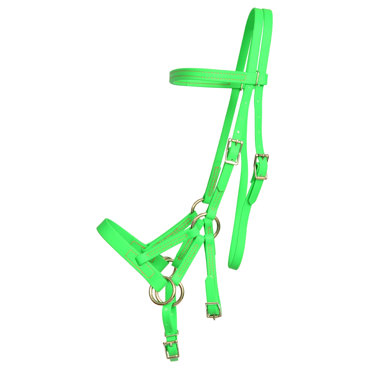 ****PHOTO SAMPLE*** $30 Lime Green with Pink Thread Beta Biothane Sidepull Headstall - Horse Size