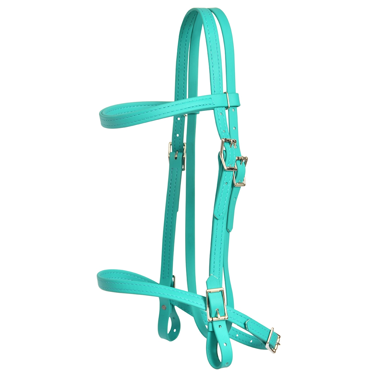 ****PHOTO SAMPLE*** $20 Turquoise Beta Biothane with Turquoise Thread English Headstall - Horse Size