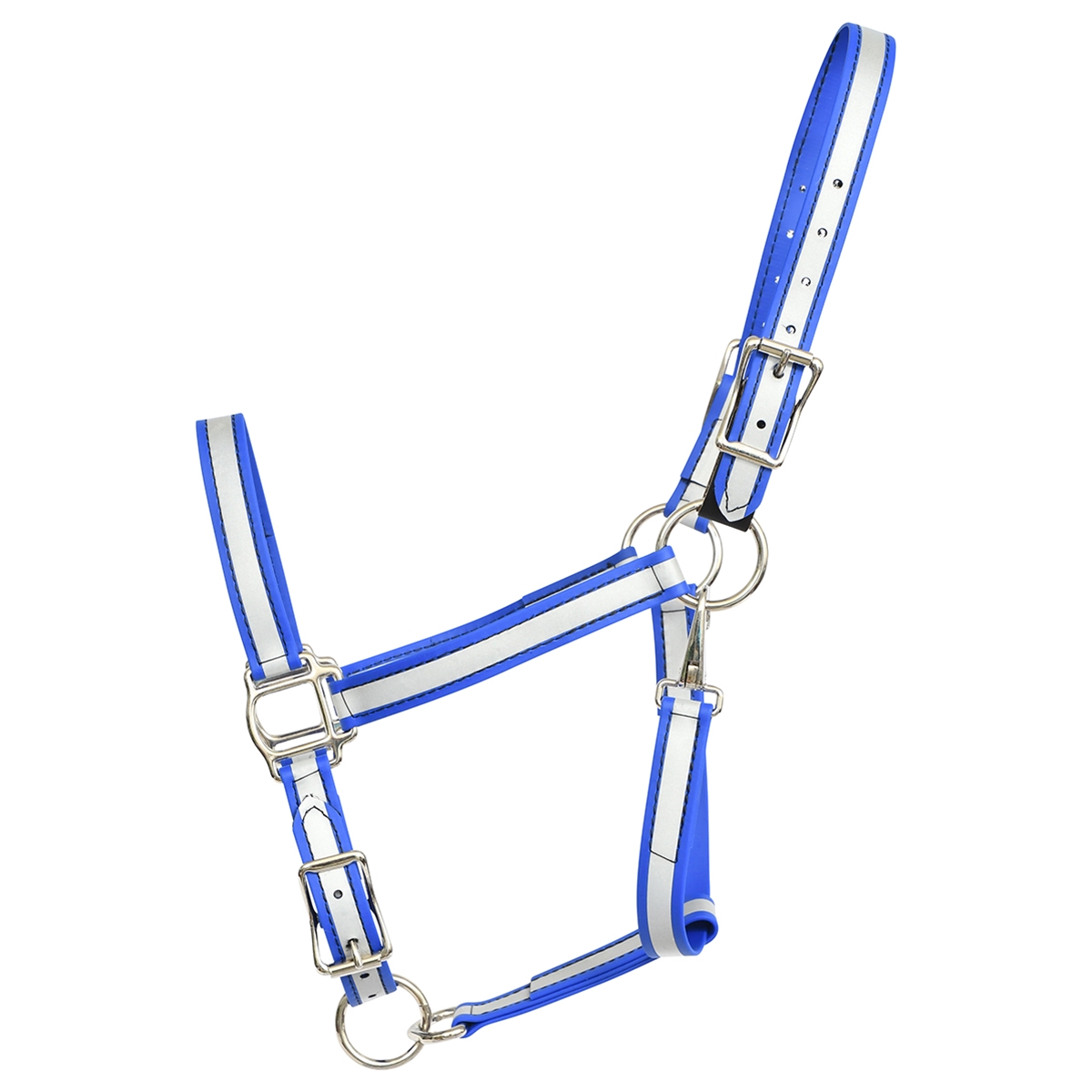Our safety halter gives you the durability of a turnout with added peace of mind. A leather tab at the right cheek will break under sudden pressure, releasing your horse in an emergency.