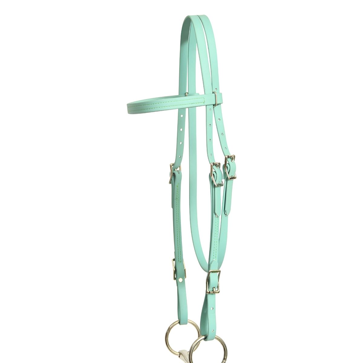 ****PHOTO SAMPLE*** $20 Dusty Turquoise Beta Biothane with Green Thread Western Headstall - Horse Size