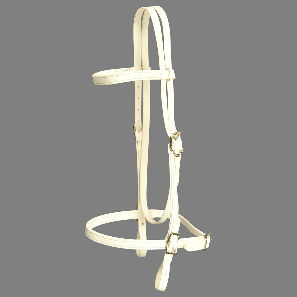 ****PHOTO SAMPLE*** $20 White Beta Biothane with Green Thread English Headstall - Horse Size