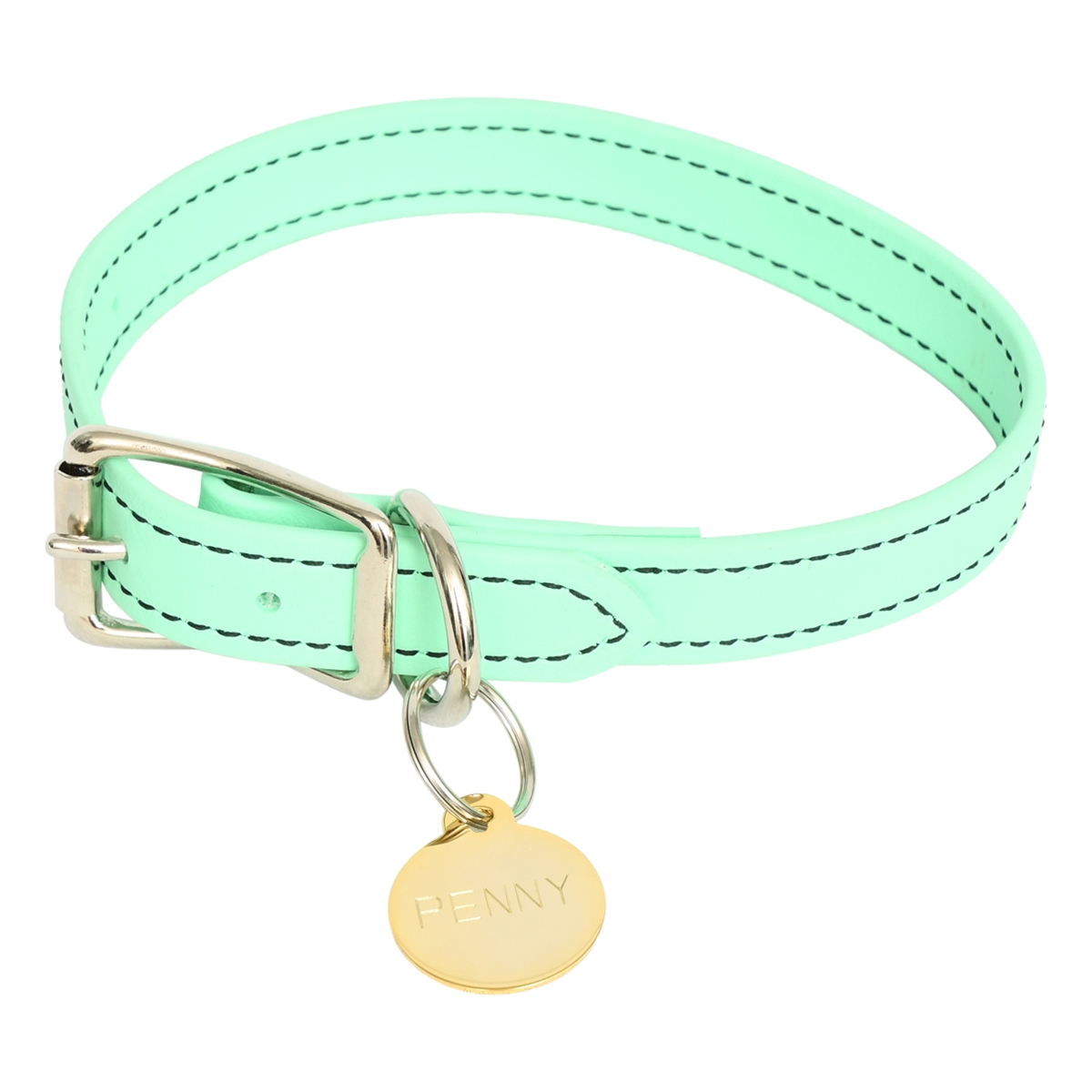 Select the type of tag you want (which dictates the size we use), the color, and shape of the tag, and tell us what you want engraved on the front and back. You may add 10 letters or numbers, giving you room for a phone number if you choose.