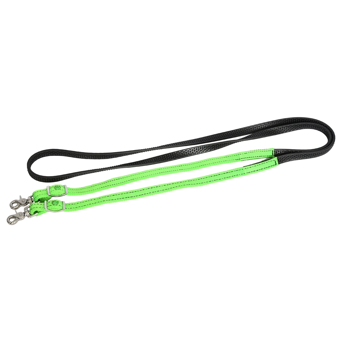 A budget-friendly alternative to our Beta BioThane reins, our nylon reins are super strong and available in a variety colors to match or complement your existing headstall. Choose from a range of lengths and styles to fit your riding discipline. Our nylon is industrially-tested for maximum strength. Nylon texture makes for easy grip, even in wet weather.