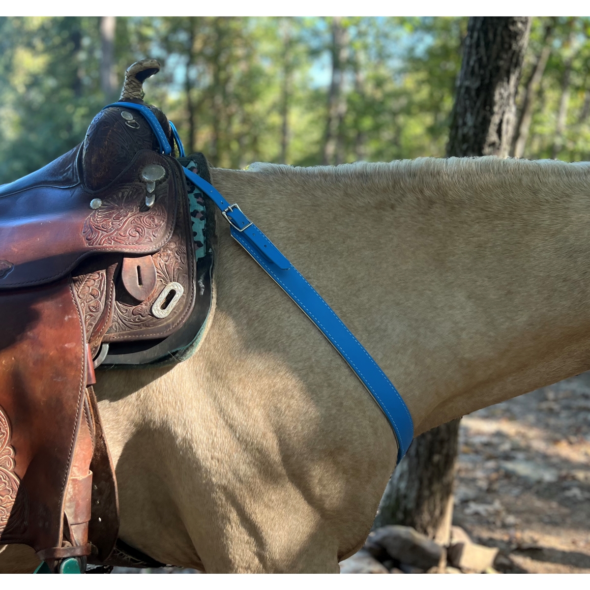 Our beta biothane pulling breast collar is designed with heavy straps that will hold up to rugged use but are also designed to avoid interference with a horse's movement or air during heavy work.