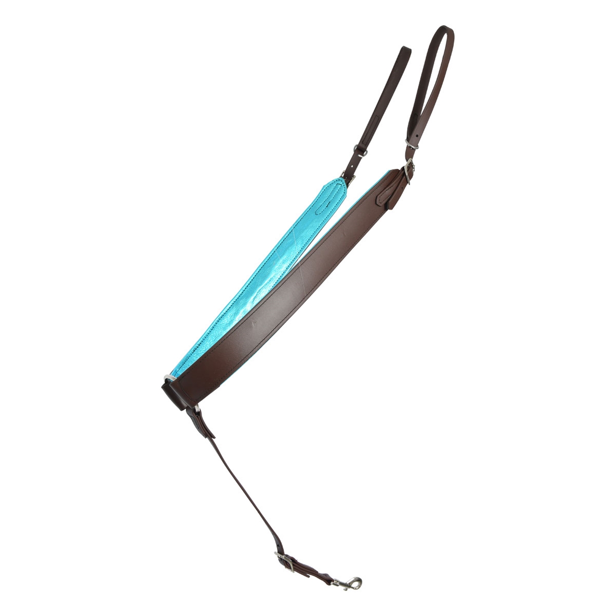 Our padded breast collar is made of our durable, water-proof beta biothane while the padding is made from leather. Each of our leather padding colors have a slight metallic sheen to them for a subtle highlight.