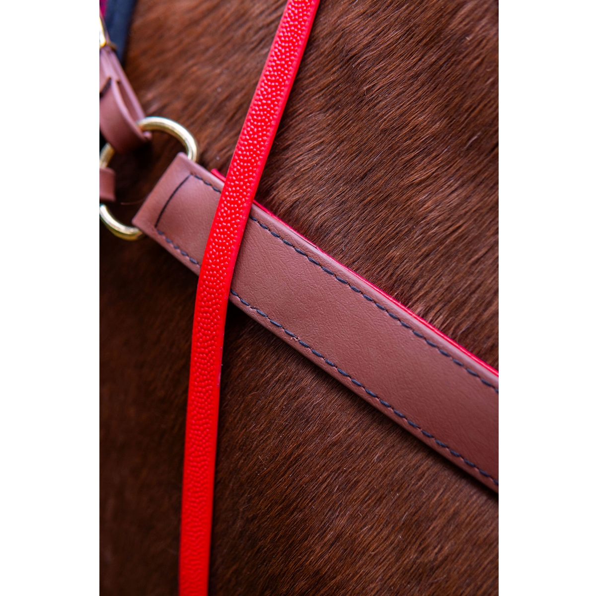Our padded breast collar is made of our durable, water-proof beta biothane while the padding is made from leather. Each of our leather padding colors have a slight metallic sheen to them for a subtle highlight.