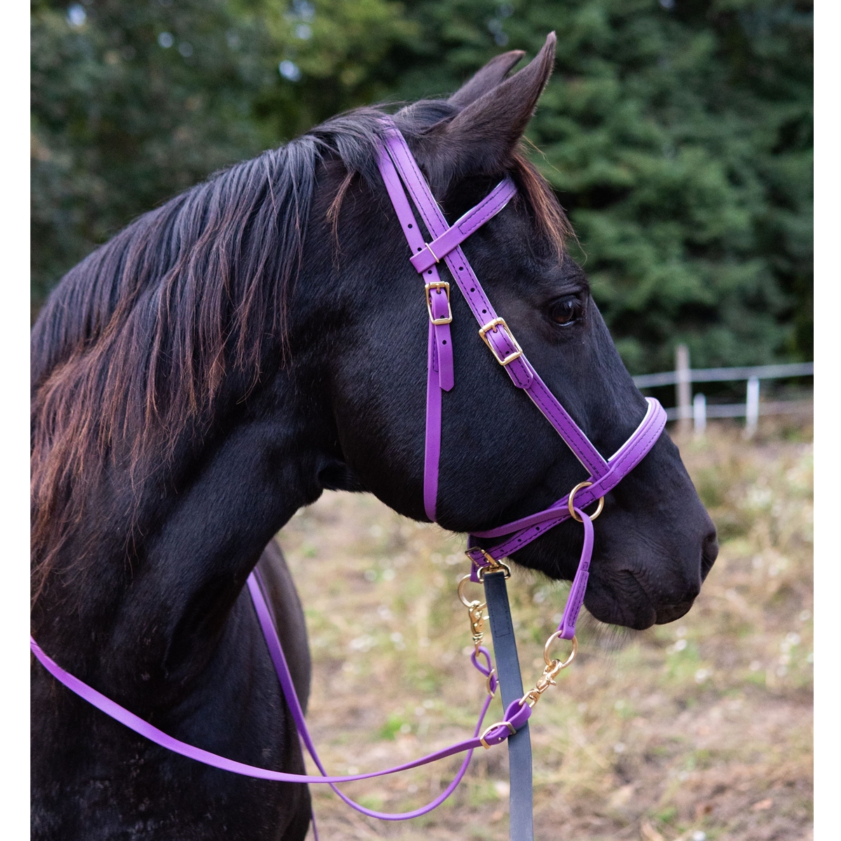 This is both a cross-under bitless bridle and a sidepull. Our unique design includes an extra piece that allows use as a regular sidepull or a bitless bridle with cross-under straps. It is fully adjustable at the cheeks, nose, and throat latch.