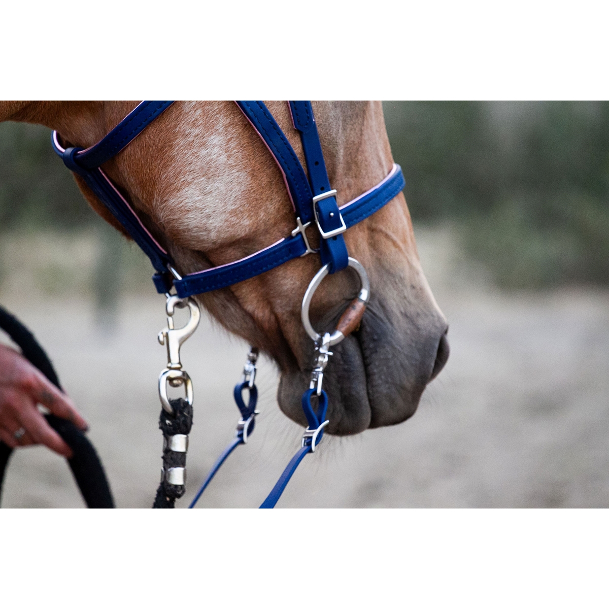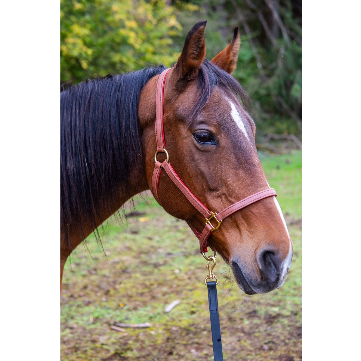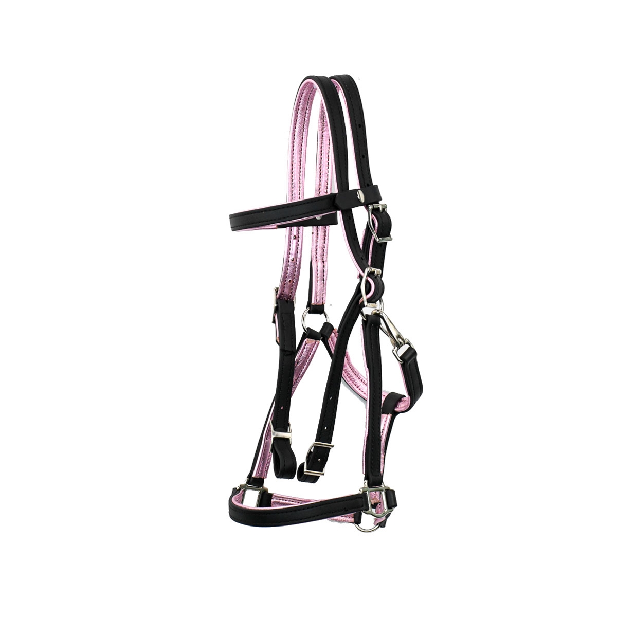 This headstall is made of beta biothane and has leather padding on the insides for maximum comfort. The leather padding comes in a range of colors and has a metallic sheen to each shade.