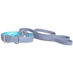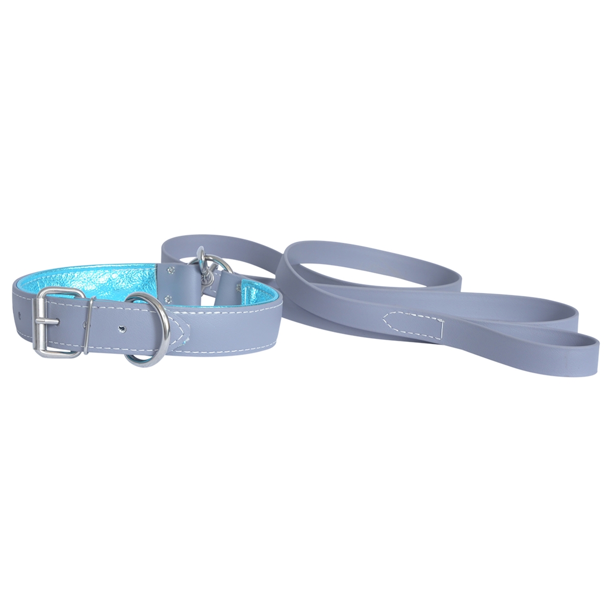 This is a beta biothane collar lined with deerskin, which is like butter to your fingertips. Like all our collars, this one is carefully stitched for maximum durability and depth throughout. Select from brass, stainless steel, or nickel-plated hardware.