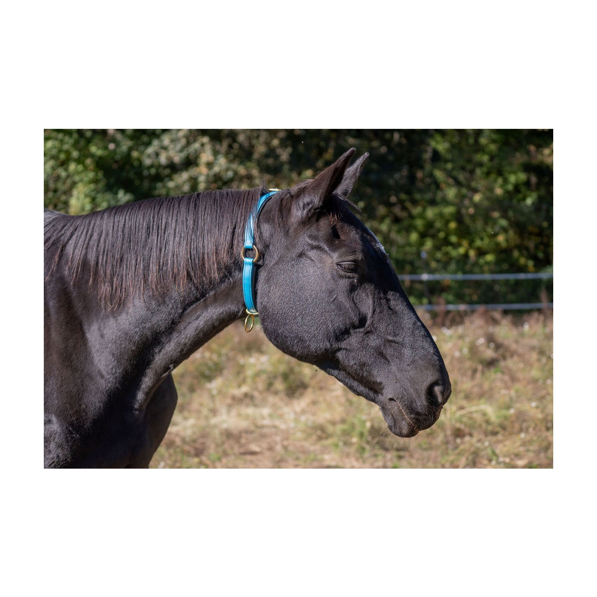 Our beta biothane neck collar can be an alternative to a halter for some horses. It's waterproof, fadeproof and sweatproof for use in the stall, the field or under saddle. Designed to rest on a comfortable spot on the horse's neck without sliding over the ears.