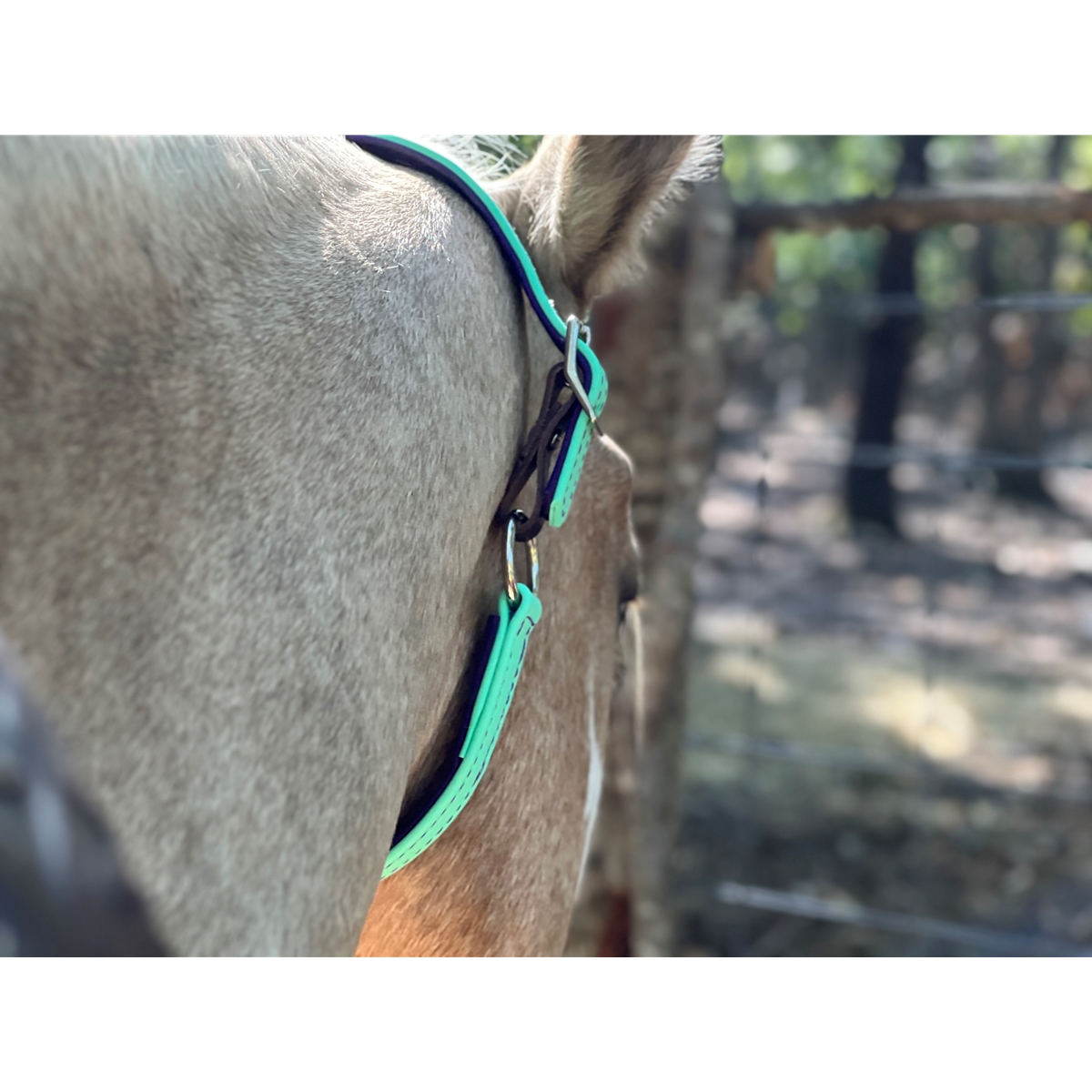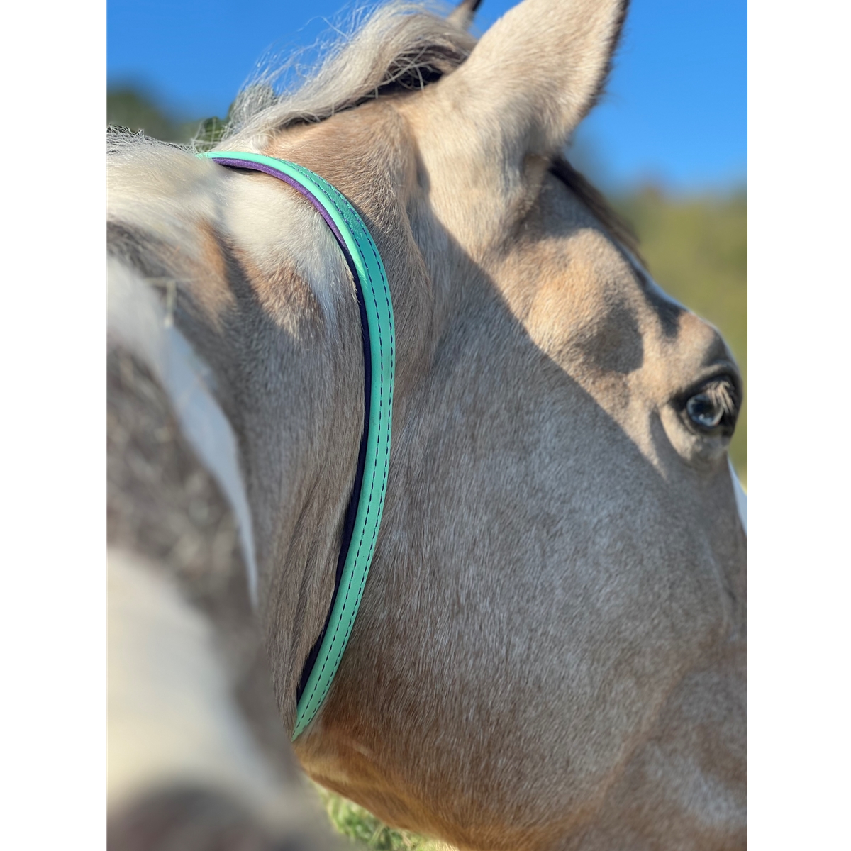 Our beta biothane neck collar can be an alternative to a halter for some horses. It's waterproof, fadeproof and sweatproof for use in the stall, the field or under saddle. Designed to rest on a comfortable spot on the horse's neck without sliding over the ears.