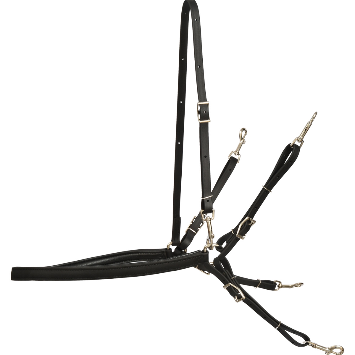 Simple, adjustable, one piece breast strap that is highly effective keeping saddle from slipping.