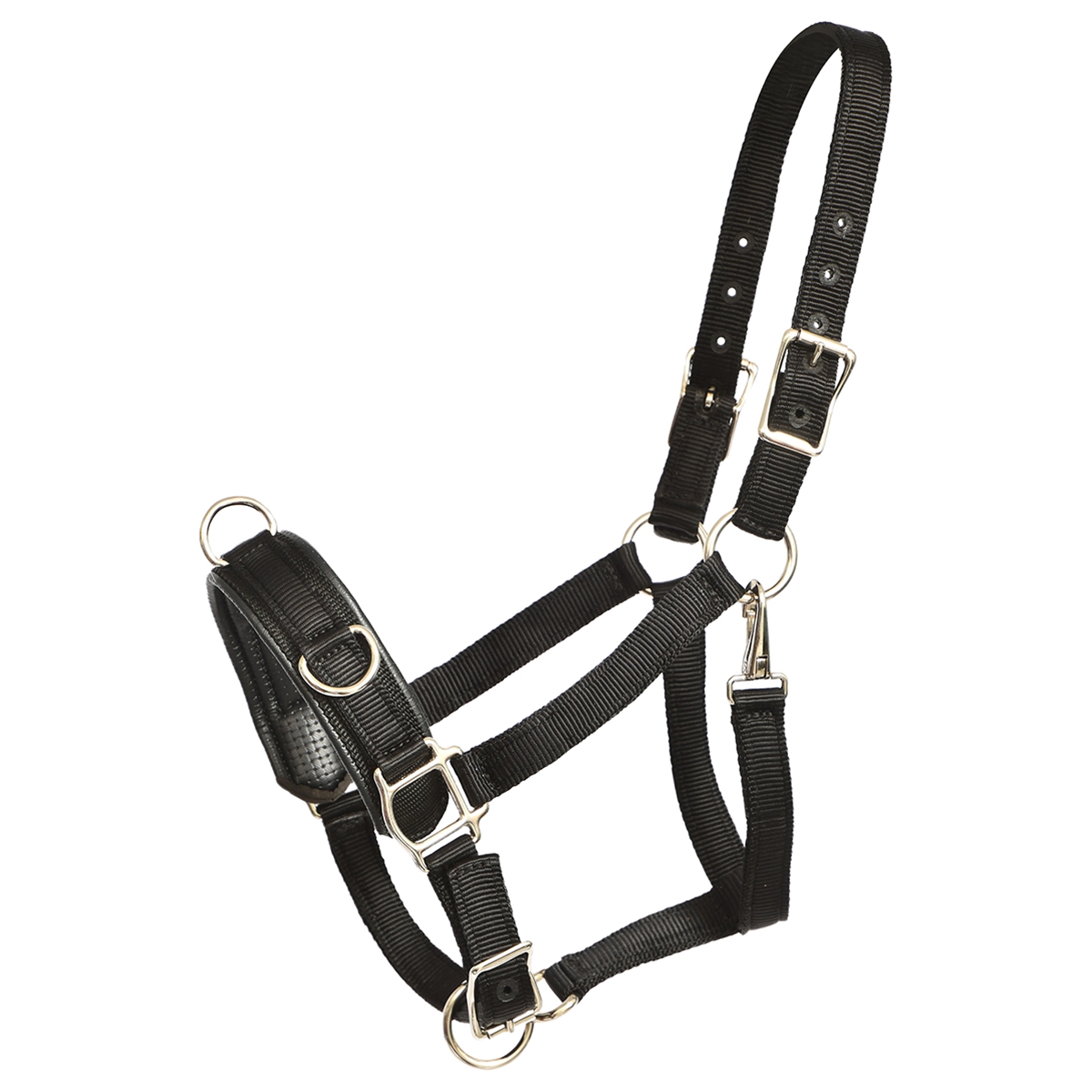 Nylon lunging cavesson comes with a range of hardware loops to attach lunge lines, reins, or leads in any spot you choose. Industrially-tested for strength, and available in a range of sizes or colors.