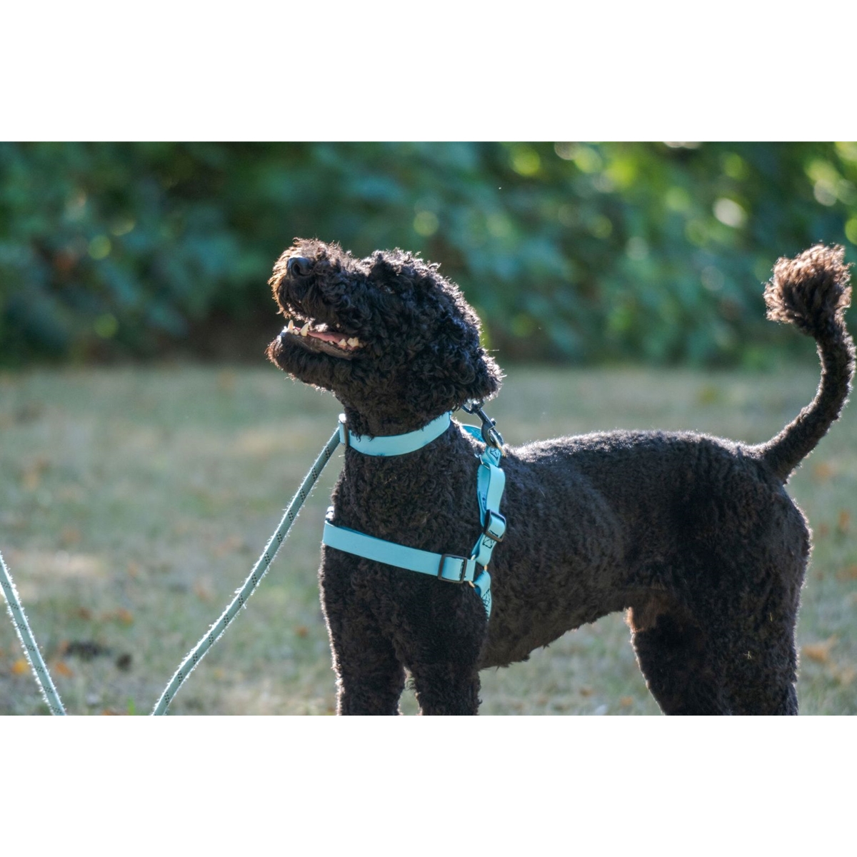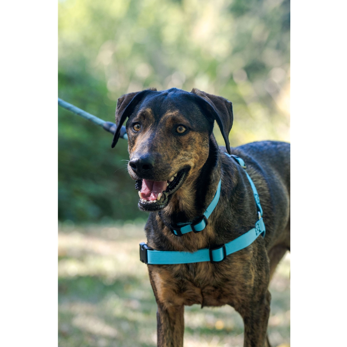 Custom made no pull dog harness. Width will vary depending on the size of the harness. Matching leashes are also available! This harness is made from our Adjustable Beta Biothane, which is a thinner, more flexible material, but still has the benefits of Beta Biothane.