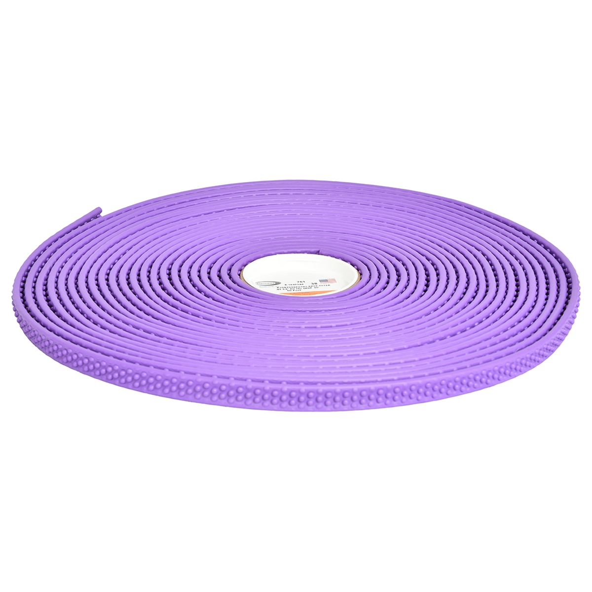 Our super grip has bumps on the surface are soft and allow for a better grip. The material is waterproof and will not deteriorate in heat or weather. 5/8" in width.
