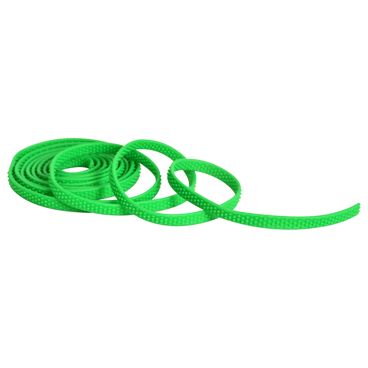 Our super grip has bumps on the surface are soft and allow for a better grip. The material is waterproof and will not deteriorate in heat or weather. 5/8" in width.