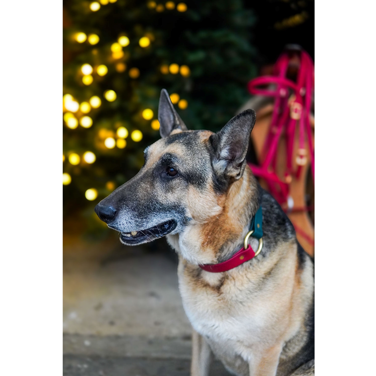 Custom made Dog Collar with center ring to improve safety, keeping the leash away from the buckle. Made from Beta Biothane.