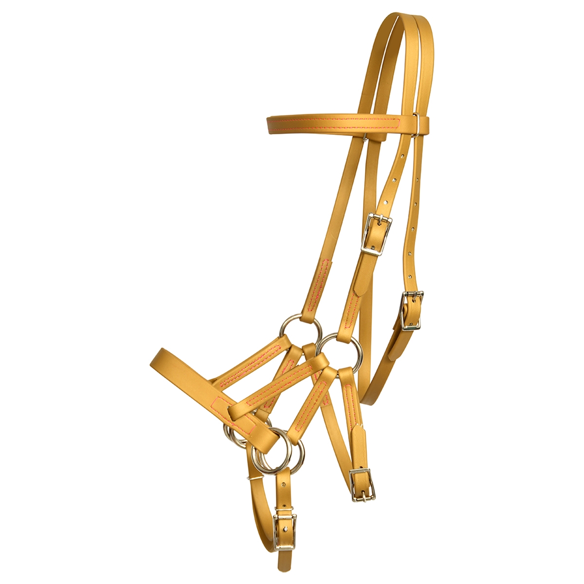 ****PHOTO SAMPLE*** $30 - Gold with Pink Thread Sidepull Bitless Headstall - Horse Size
