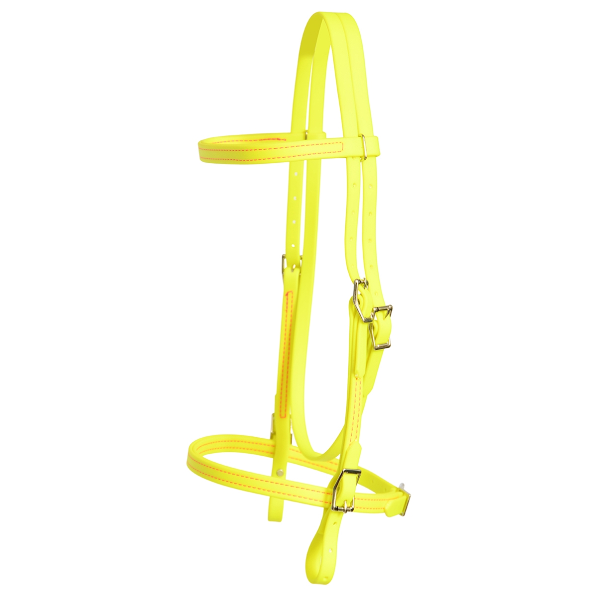 ****PHOTO SAMPLE*** $20 Safety Yellow with Pink Thread Beta Biothane English Headstall - Horse Size