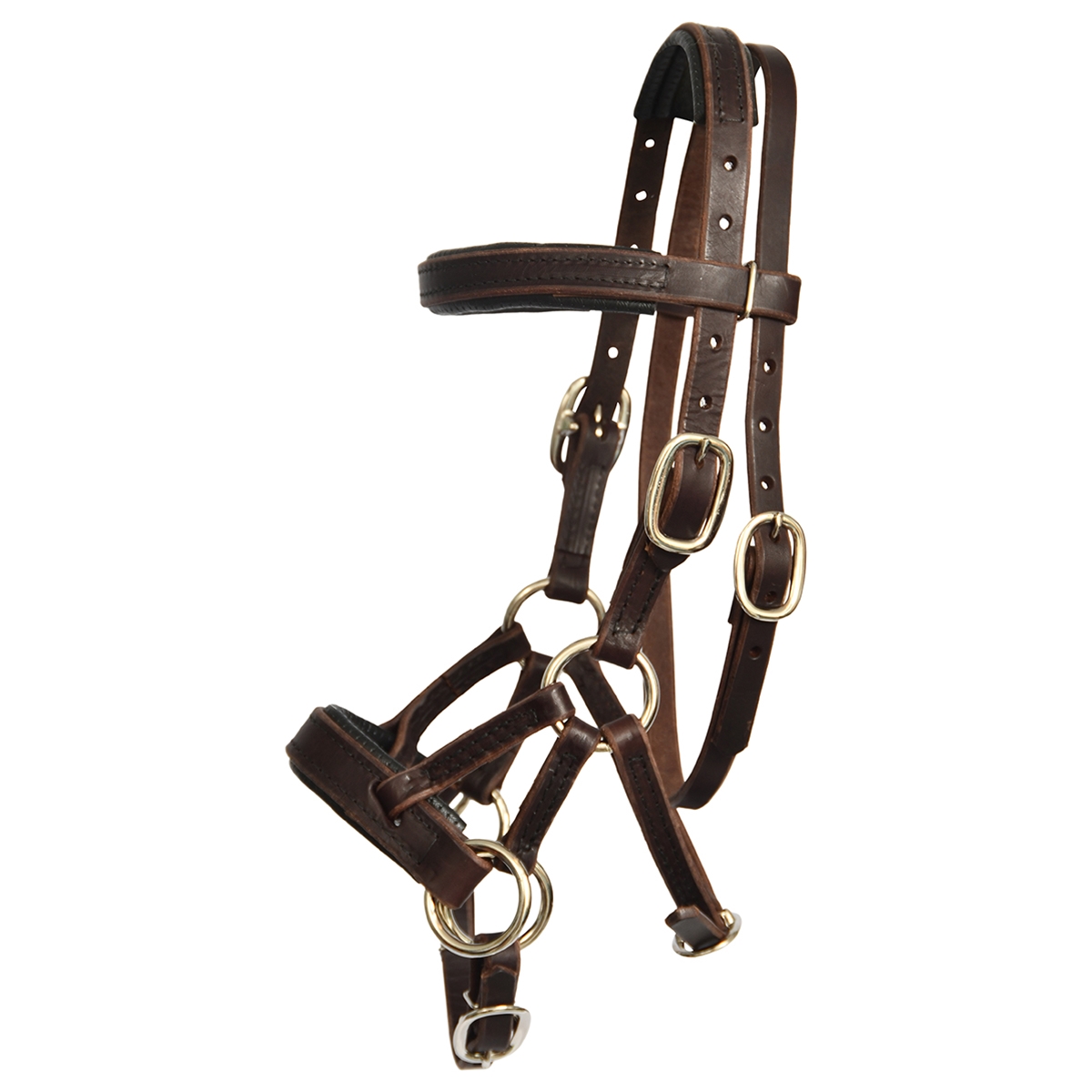 ****PHOTO SAMPLE*** $25 Dark Brown Leather with Neoprene Padding Sidepull Headstall - Pony Size