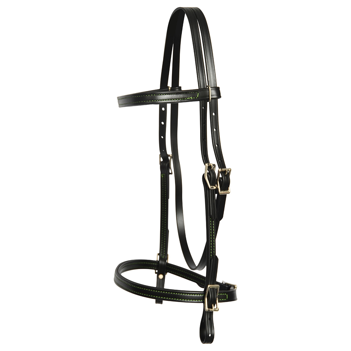 ****PHOTO SAMPLE*** $20 Black Better Than Leather English Headstall with Lime Green Thread - Horse Size
