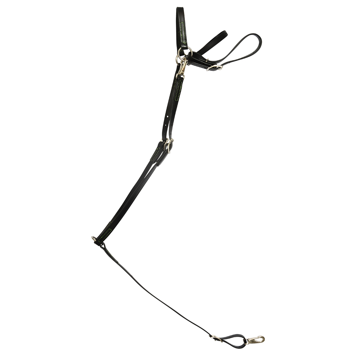 ****PHOTO SAMPLE*** $25 Black Better Than Leather English Breast Collar with Lime Green Thread - Horse Size