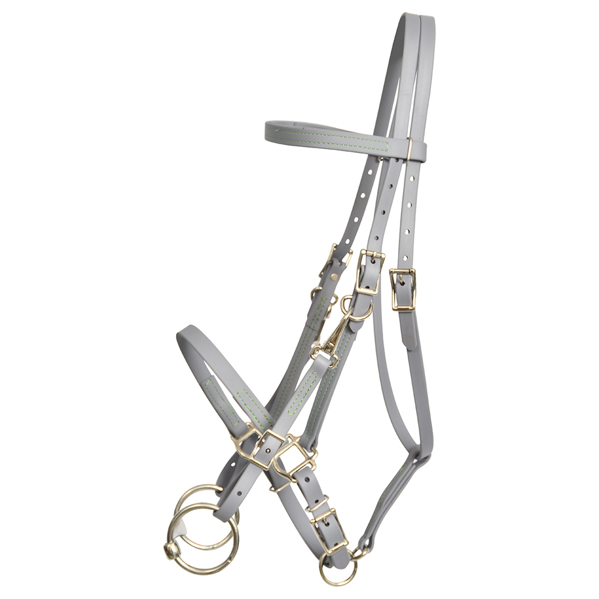 ****PHOTO SAMPLE*** $30 Gray Beta Biothane with Lime Green Thread Halter Bridle with Bit Hangers Headstall - Horse Size