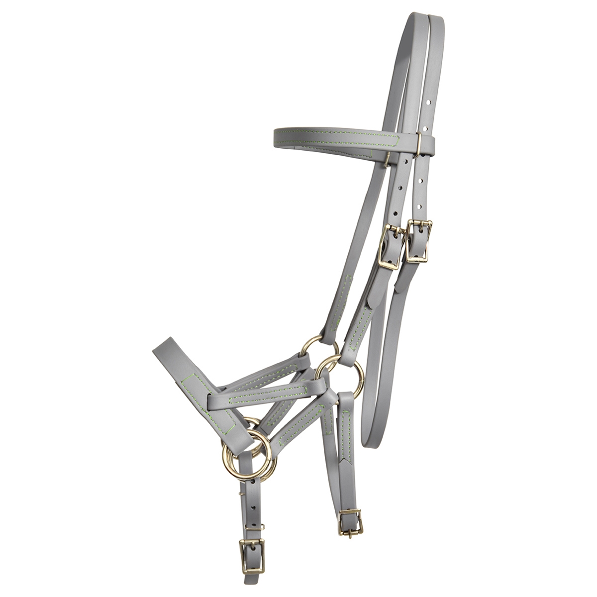 ****PHOTO SAMPLE*** $30 Gray Beta Biothane with Lime Green Thread Sidepull Headstall - Horse Size
