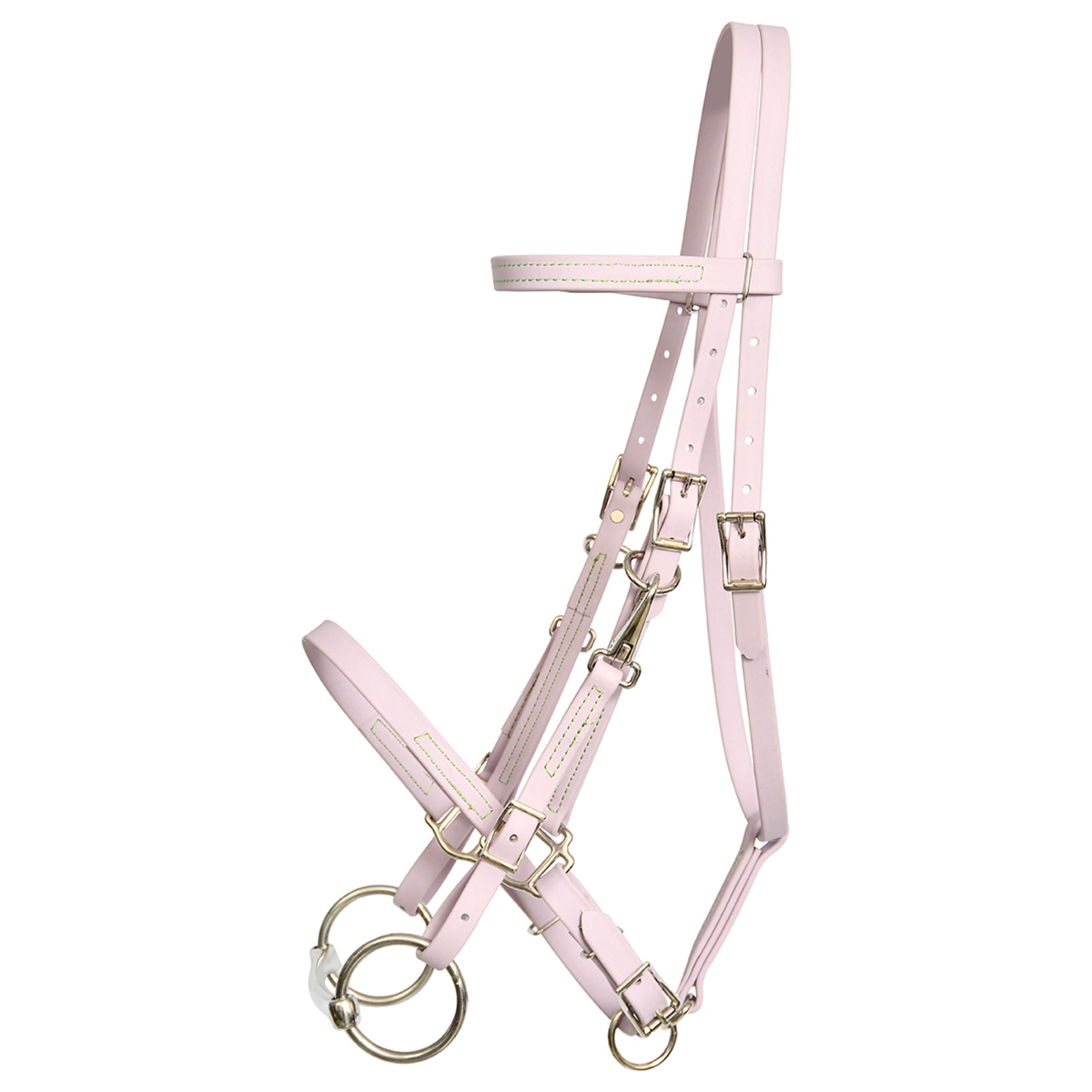 ****PHOTO SAMPLE*** $30 Lavender Beta Biothane with Lime Green Thread Halter Bridle with Bit Hangers Headstall - Horse Size