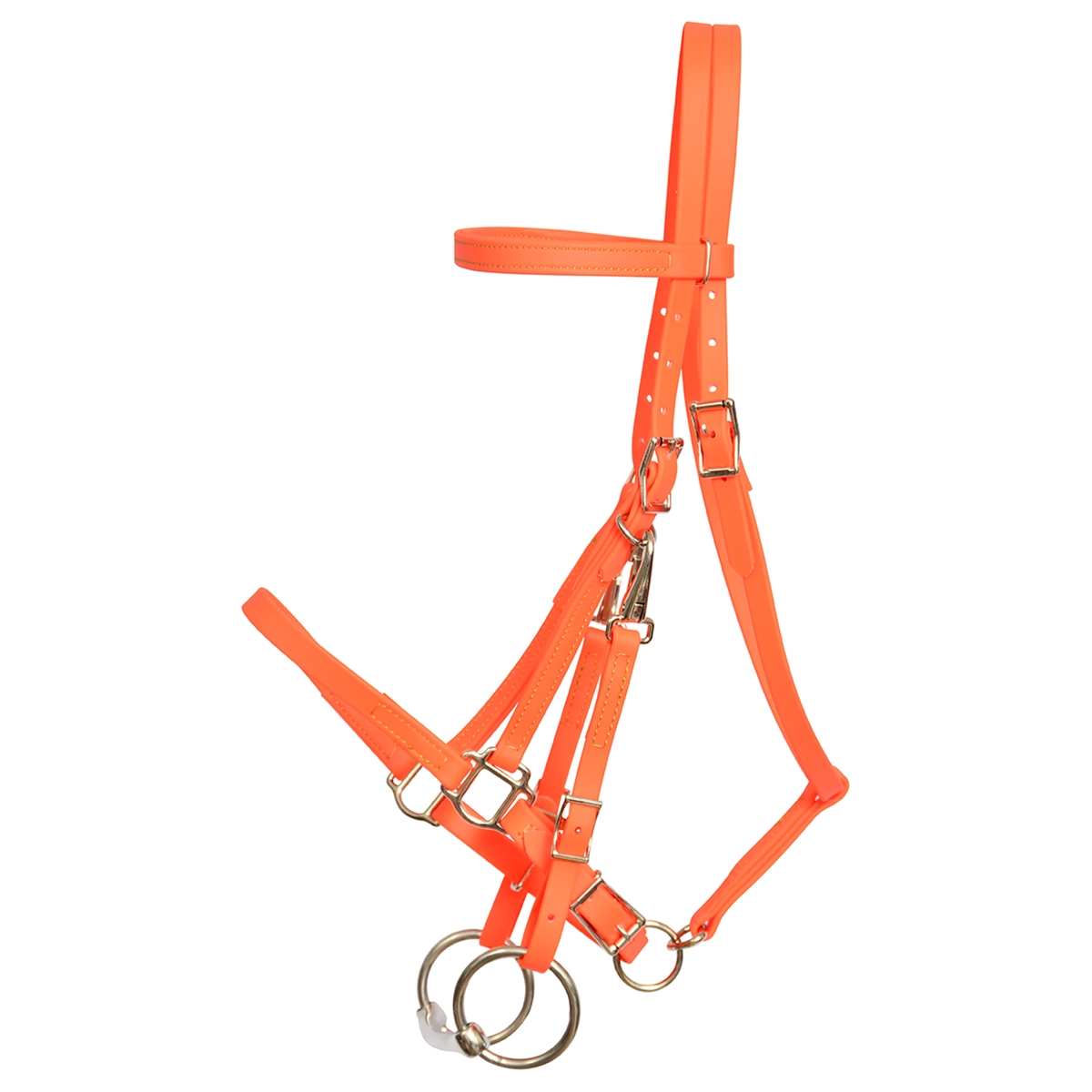 ****PHOTO SAMPLE*** $30 Hunters Orange Beta Biothane with LIME GREEN THREAD Halter Bridle with Bit Hangers Headstall - Horse Size