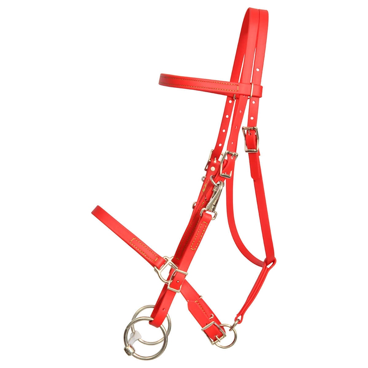 ****PHOTO SAMPLE*** $30 Red Beta Biothane with LIME GREEN THREAD Halter Bridle with Bit Hangers Headstall - Horse Size