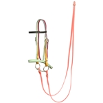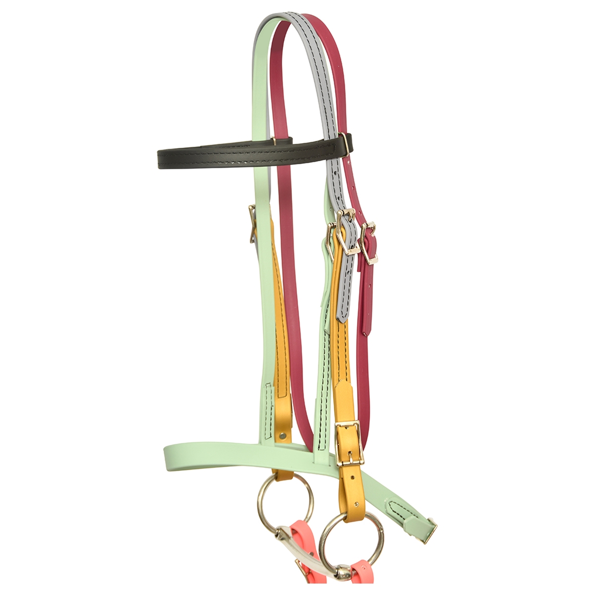 Fully adjustable at the cheeks, nose band, bit, and throat latch.