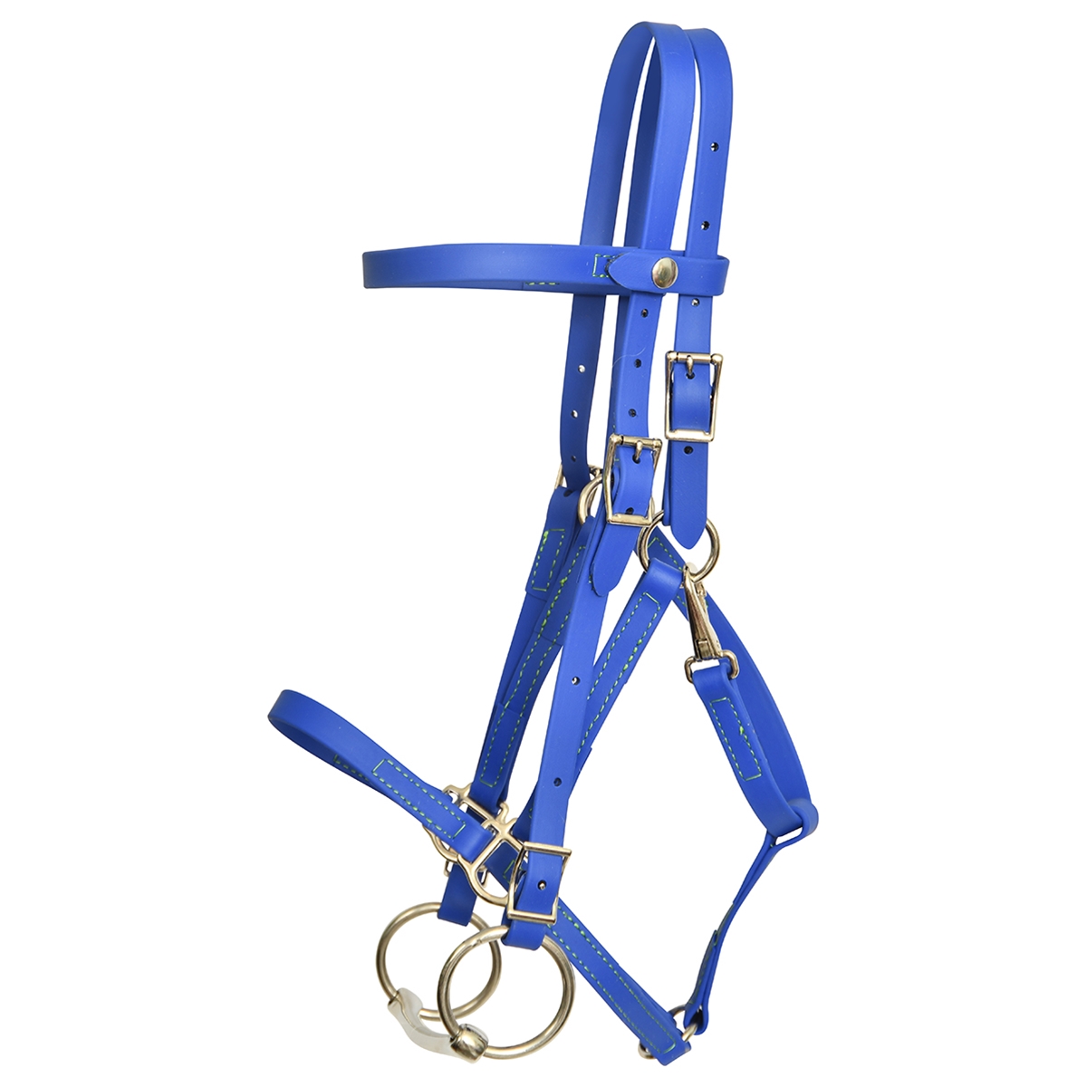 ****PHOTO SAMPLE*** $30 Royal Blue Beta Biothane with Green Thread Quick Change Halter Bridle Headstall - Horse Size