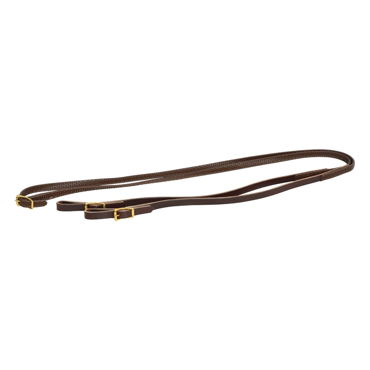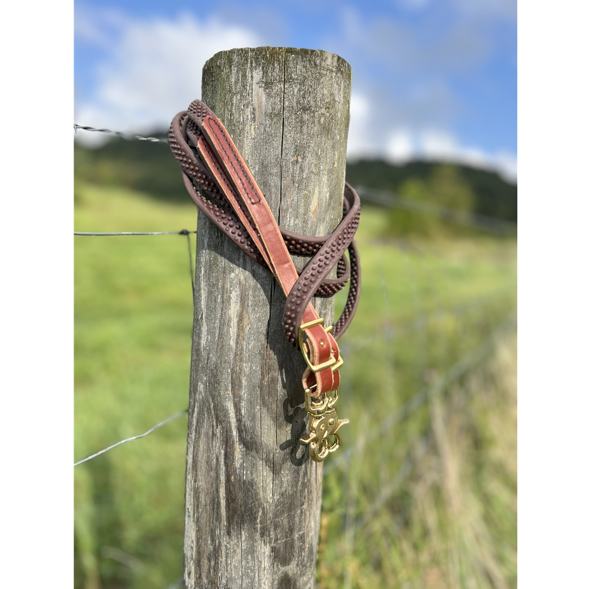 Any Color/Any Width Leather Base available in 5/8" (recommended) or 3/4" inch widths. Strong, supple reins with a texture that allows for an easier grip while riding. These reins have a larger dot texture that allows for a better rein grip - with or without riding gloves. SuperGrip is waterproof, sweatproof and won't get a gummy texture in the heat.