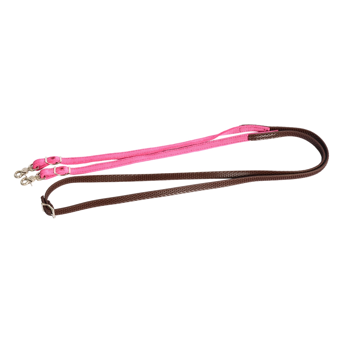 A budget-friendly alternative to our Beta BioThane reins, our nylon reins are super strong and available in a variety colors to match or complement your existing headstall. Choose from a range of lengths and styles to fit your riding discipline. Our nylon is industrially-tested for maximum strength. Nylon texture makes for easy grip, even in wet weather.