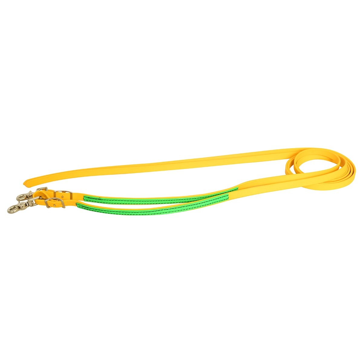 ****PHOTO SAMPLE*** $10 Sunflower Yellow Beta Biothane with Light Green Overlay Western Split Reins with Snaps on Bit Ends