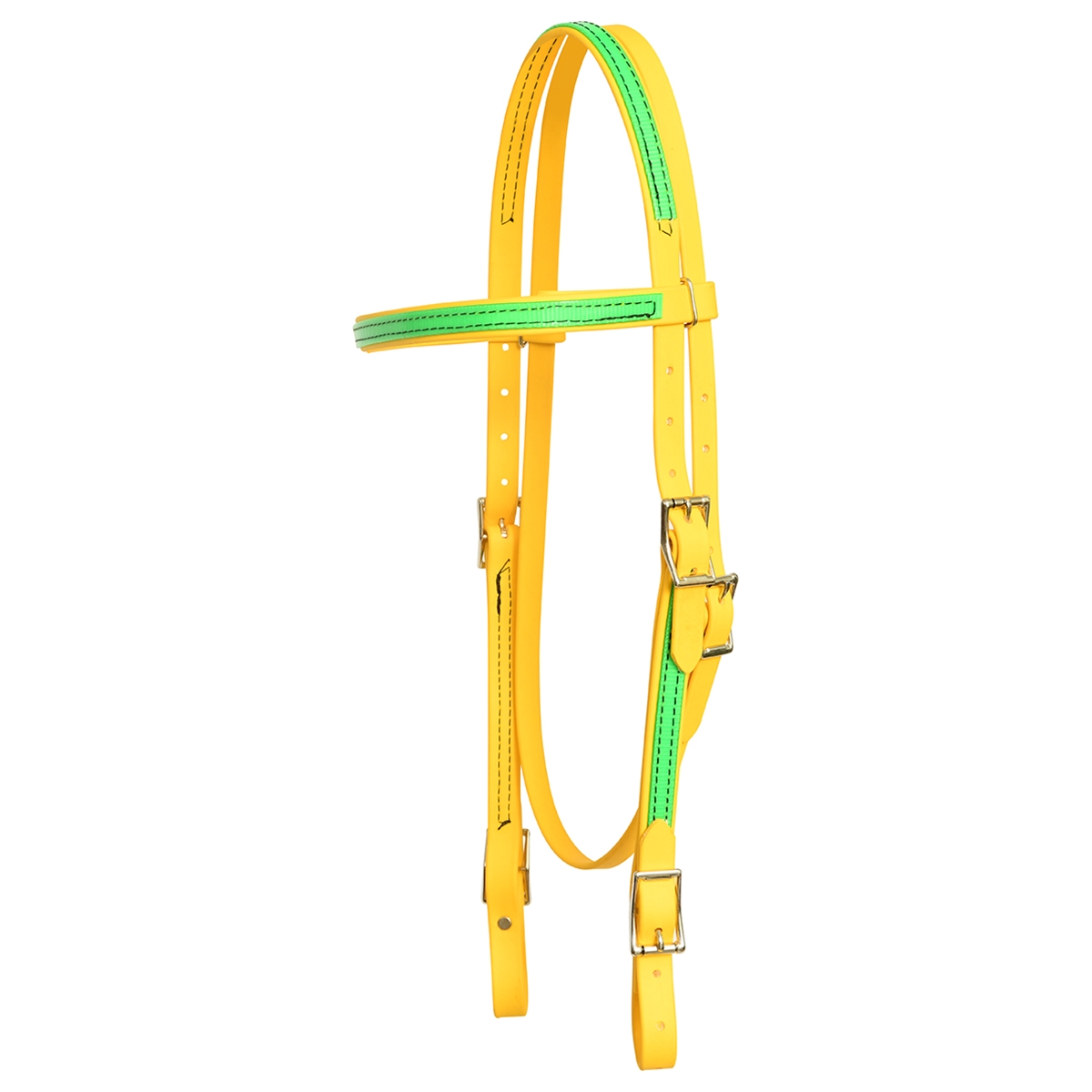 ****PHOTO SAMPLE*** $20 Sunflower Yellow Beta Biothane with Light Green Overlay Western Headstall - Horse Size