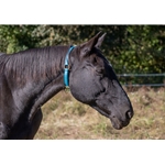 Our beta biothane neck collar can be an alternative to a halter for some horses. It's waterproof, fadeproof and sweatproof for use in the stall, the field or under saddle. Designed to rest on a comfortable spot on the horse's neck without sliding over the ears.