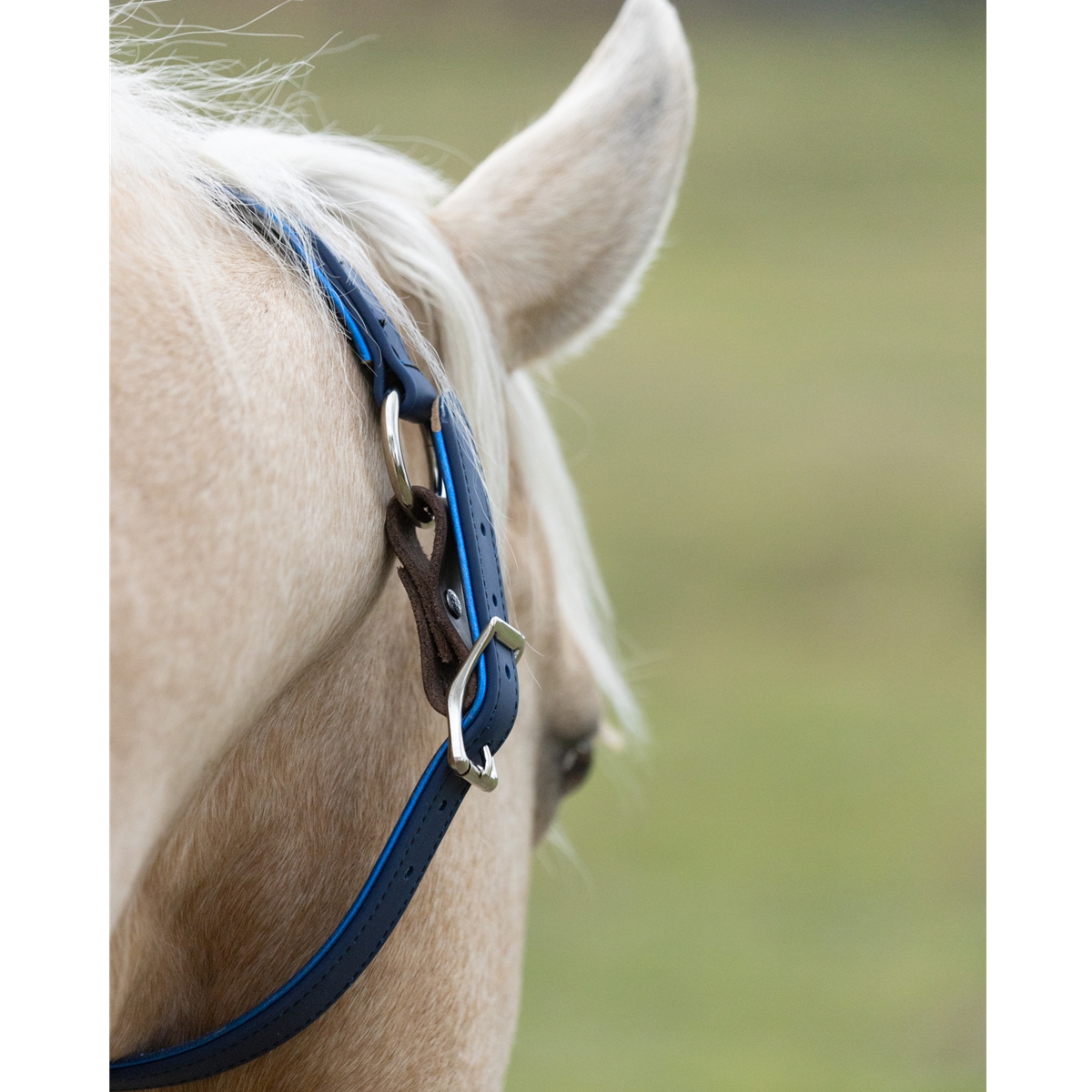 This neck collar features a buckle closure and is fully adjustable. This design is made of durable, water-proof beta biothane while the padding is made from leather. Each of our leather padding colors have a slight metallic sheen to them for a subtle highlight.