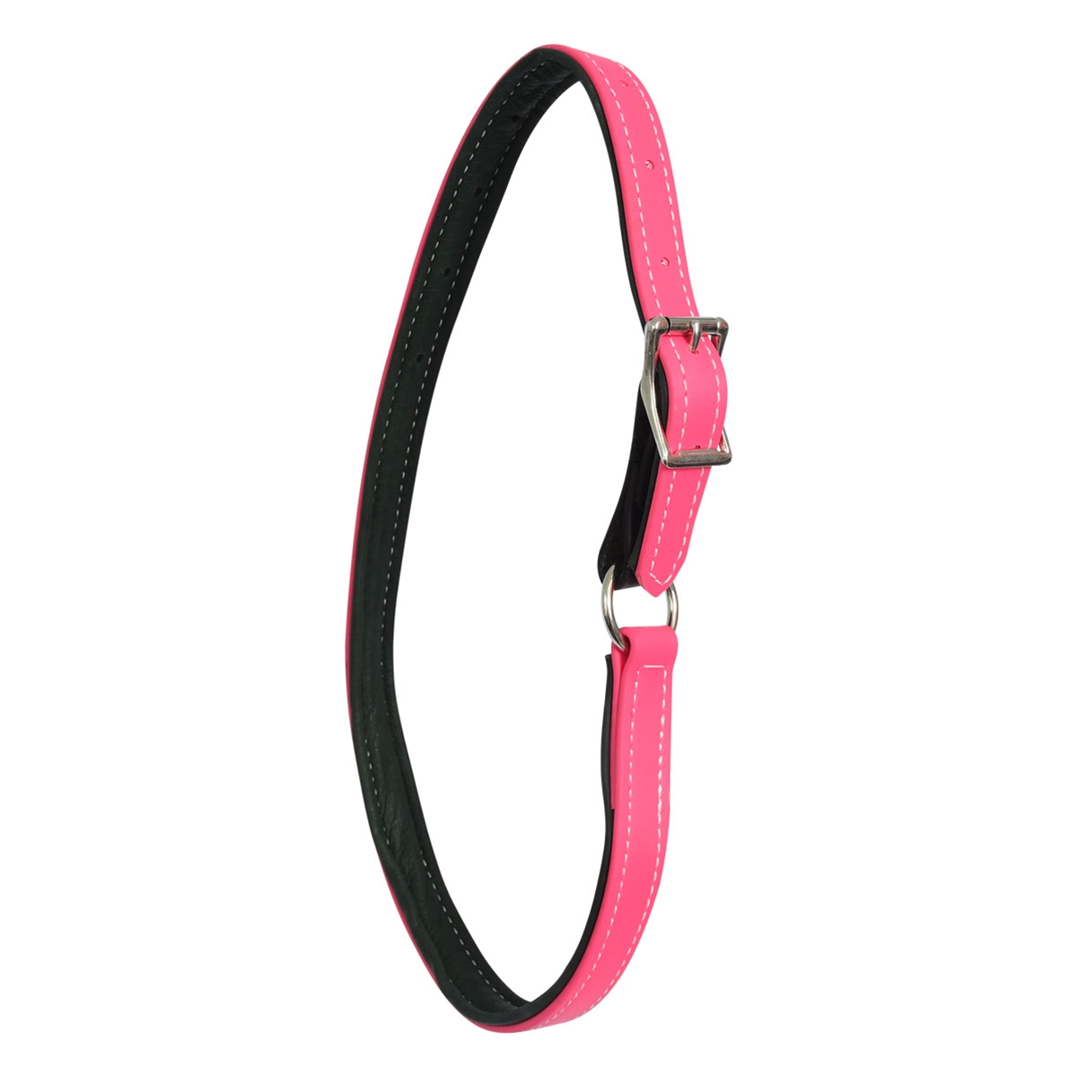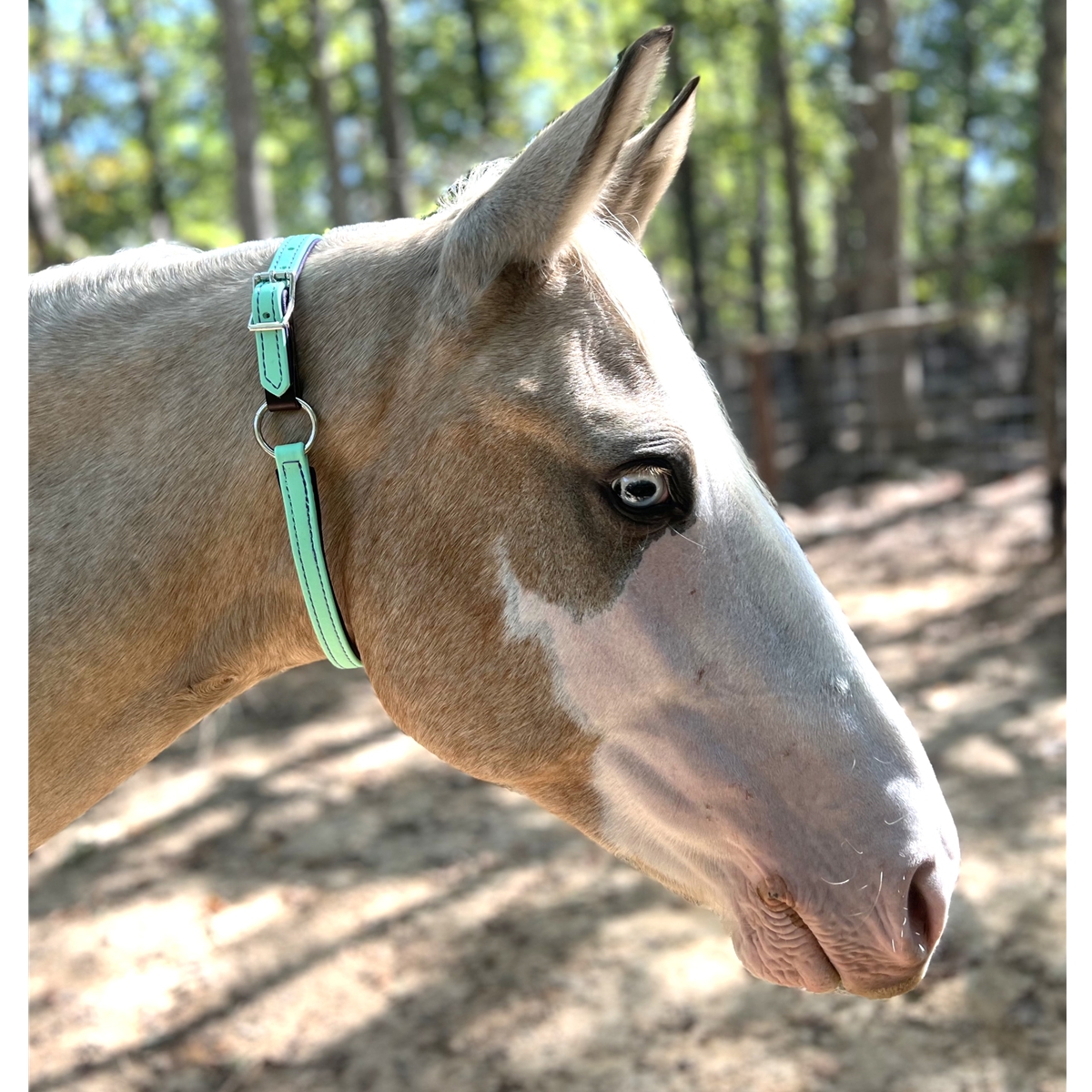 Our beta biothane neck collar can be an alternative to a halter for some horses. It's waterproof, fadeproof and sweatproof for use in the stall, the field or under saddle. Designed to rest on a comfortable spot on the horse's neck without sliding over the ears.