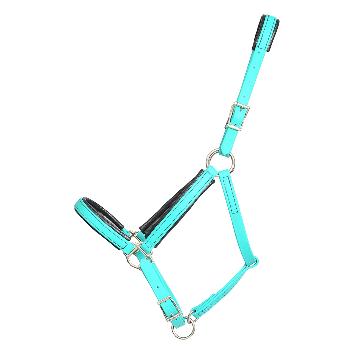 Our stable halter is our simplest halter, ideal for use inside the barn. Solid chin, solid cheek, and a double buckle crown in a solid design.